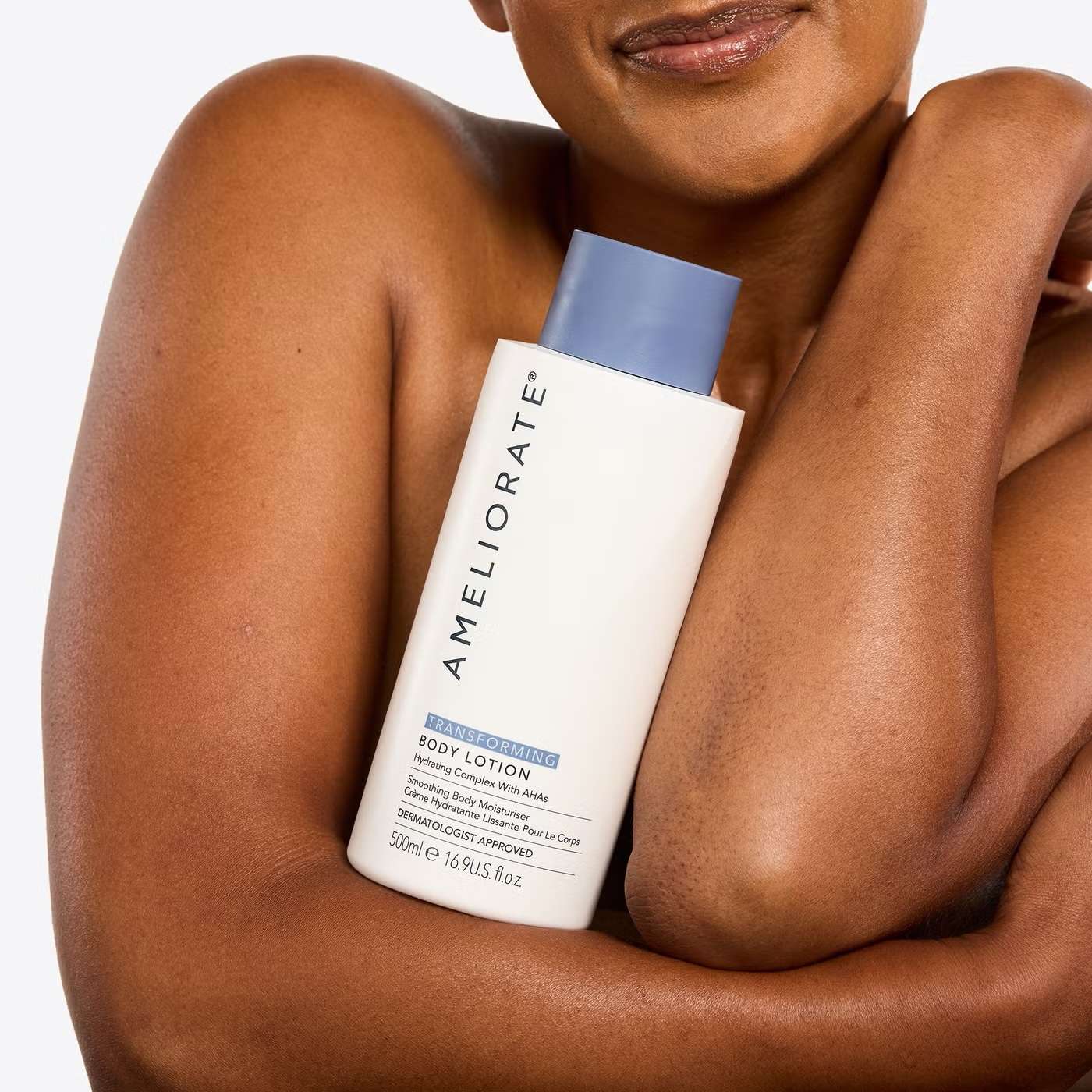 Technologically advanced, AMELIORATEs fragrance-free Supersize Transforming Body Lotion has a patent-pending formulation which combines alpha-hydroxy therapy with a unique complex of natural ingredients, to enhance skin condition and support its own exfoliation processes.