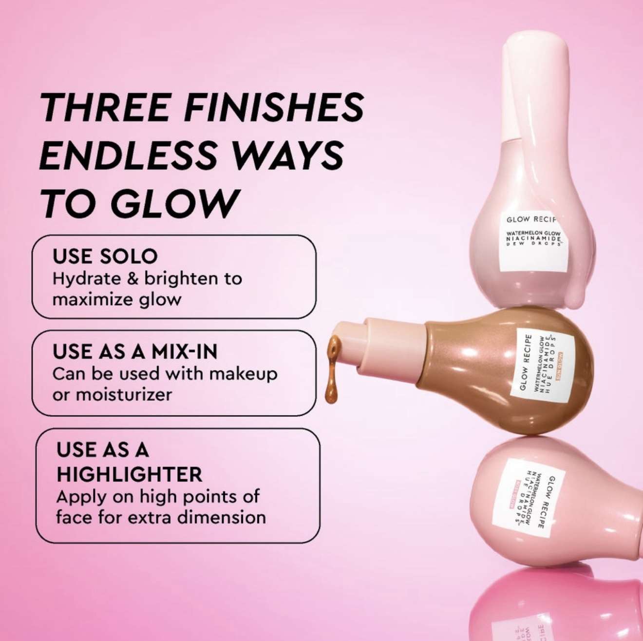 What it is : A skincare-powered trio of mini multi-use serums clinically proven to hydrate, smooth, and brighten over time for a dewy glow – in three radiant finishes.