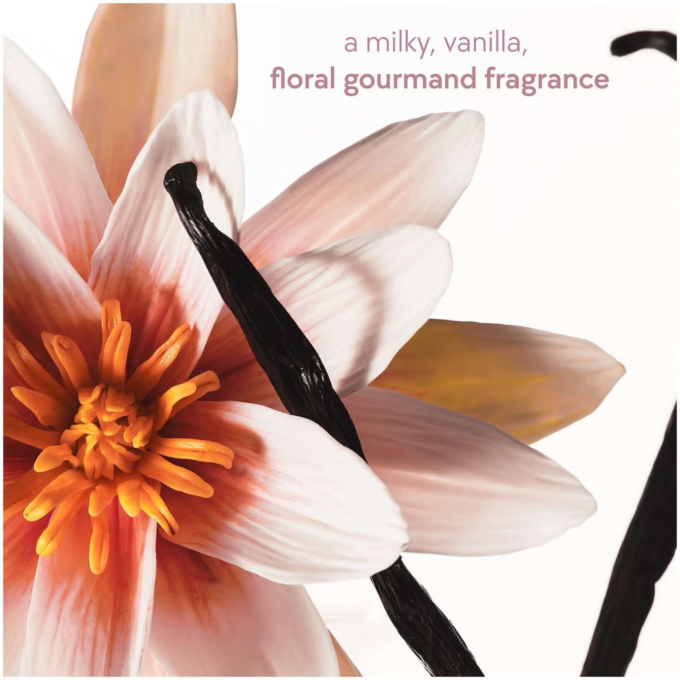 An elegant lily and milk-topped fragrance with gourmand layers that wrap you in sweetness.